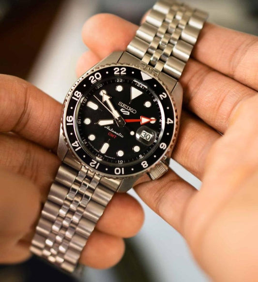 (Copy) Sko 5 GMT stainless steel white Dial black Bezel watch