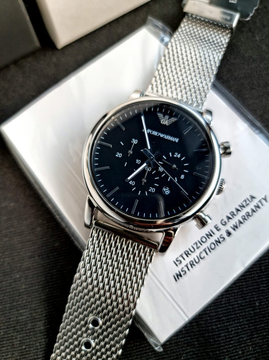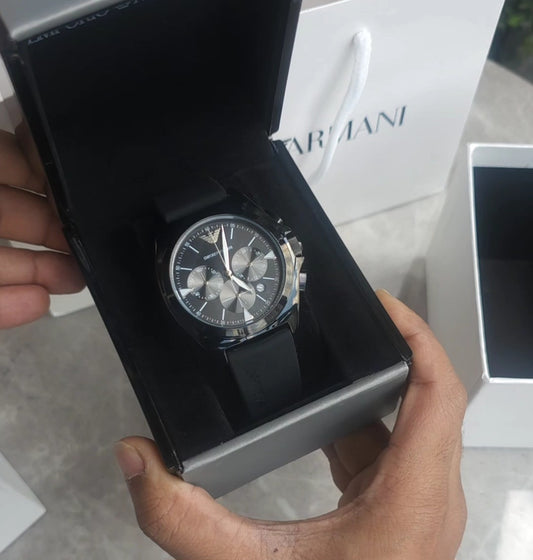 Armani Stainless Steel silver Chronograph Metal black dial watch