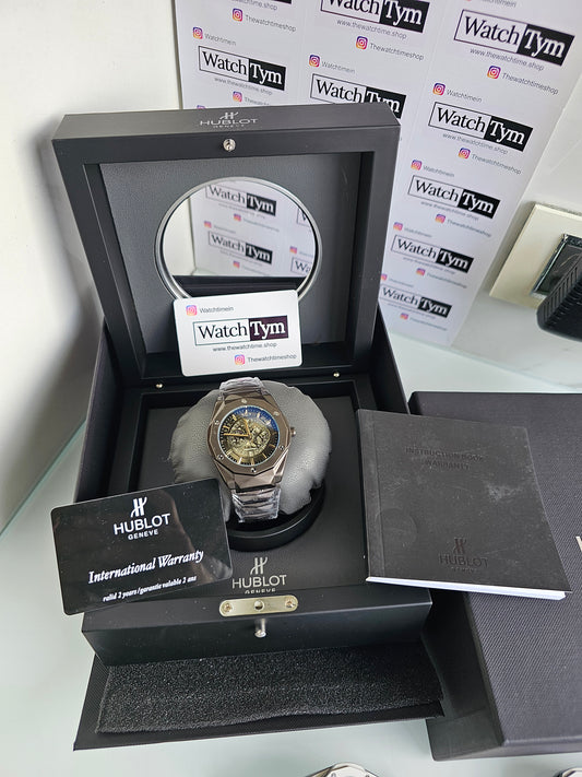Hublot Stainless steel Matte Black Diamond cut skeleton watch