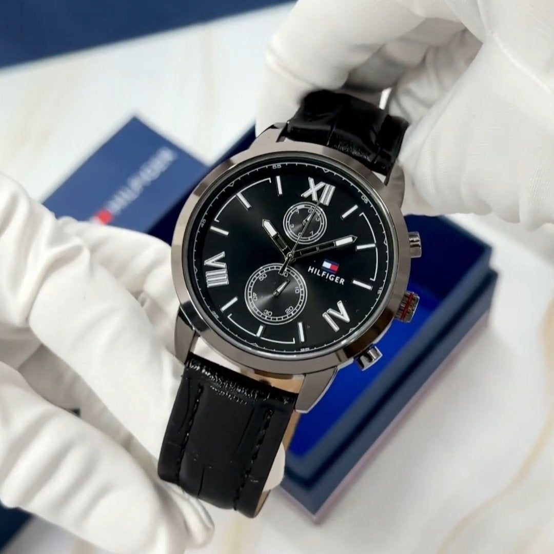Tommy Hilfiger Black Leather Watch